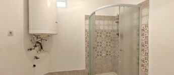 A 120 m2-es lakótér 3 benapozott szobával és nagy alapterületű konyhával rendelkezik, utóbbi kialakítása a vevőre vár.