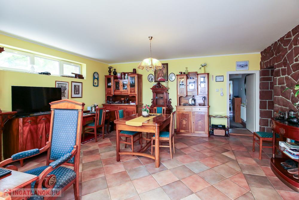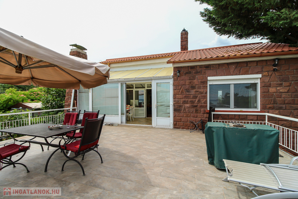 Für Immobiliensuchende am Balaton eröffnet sich jetzt eine großartige Gelegenheit! Das zum Verkauf angebotene Familienhaus befindet sich im Villanegyede von Balatonalmádi, auf einem 2.000 Quadratmeter großen Grundstück mit einem echten Panoramablick auf den Balaton. Die fast 50 Quadratmeter große Terrasse bietet einen unvergleichlichen Blick auf den See von Kenese bis zur Spitze von Tihany und darüber hinaus. Schauen Sie sich das blaue Band von hier aus an! Das Gebäude wurde Mitte der 1990er Jahre aus für die Region typischen roten Steinen und Backsteinen erbaut. Dieses Haus in ausgezeichnetem Zustand hat eine Nettogröße von 140 Quadratmetern und verfügt über einen unverfälschten Balaton-Weinkeller. Der alte Garten ist ein hervorragender Ort für Erholung im Freien, sei es beim Grillen, bei Familienfeiern oder beim Sonnenbaden, Hauptsache, Sie können sich hier entspannen. Die Zufahrt erfolgt über eine asphaltierte Straße, ca. Es liegt 1,5 Kilometer entfernt. Kurze technische Beschreibung: Bau: 1990er Jahre, seitdem regelmäßig gewartet. Untergrund: verdichteter Boden, Kiesfüllung: 15 cm, Sockelbeton: 10 cm, Abdichtung: 5 cm, Sockelbeton: 6 cm, Kaltdeckung: 2 cm. Tragendes Mauerwerk: Perm (Buntsandstein) 50 cm dick oder 38er Ziegelmauerwerk. Platte: Gipskartonplatte: 1,5 cm, Wärmedämmung: 20 cm, Stahl-Holz-Tragkonstruktion, OSB-Platte 2,2 cm, Dachkonstruktion: Holzplatte: 0,5 cm, Wärmedämmung: 12 cm, Stahlkonstruktion mit Brandschutzfarbe, FYVEK-Folie, Lindab Ziegeldach. Heizsystem: Saunier Duval-Brennwertkessel mit Heizkörperwärmeleistung, Warmwasser wird auch hieraus geliefert. Türen: Thermotüren und -fenster aus zweischichtigem Kunststoff. Die Größe des Grundstücks und seine beiden Straßeneingänge ermöglichen auch den Bau eines weiteren 150 Quadratmeter großen, zweistöckigen Hauses. Sie können die Hälfte der Fläche an einem bestimmten Abend verkaufen und haben immer noch ein Grundstück von 1.000. Wenn Sie eine Immobilie am Balaton mit ewigem Panorama für Ihre eigenen Zwecke oder für eine wertvolle Investition suchen, ist diese für beides geeignet. Zögern Sie nicht, rufen Sie mich gerne schnellstmöglich an!