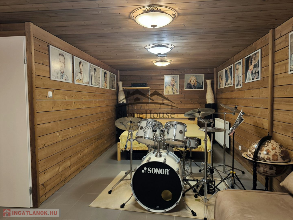 1 szint 48 m2: Pincéből kialakított hatalmas 25 m2-es szoba, konyha-borozó, ahol a háztartási gépek is beépítésre kerültek, fürdőszoba zuhanyzóval és FINN SZAUNÁVAL gépészeti helyiség és a több, mint 100 m2 részben fedett TERASZ grillezővel, kemencével és bográcsozóval.
