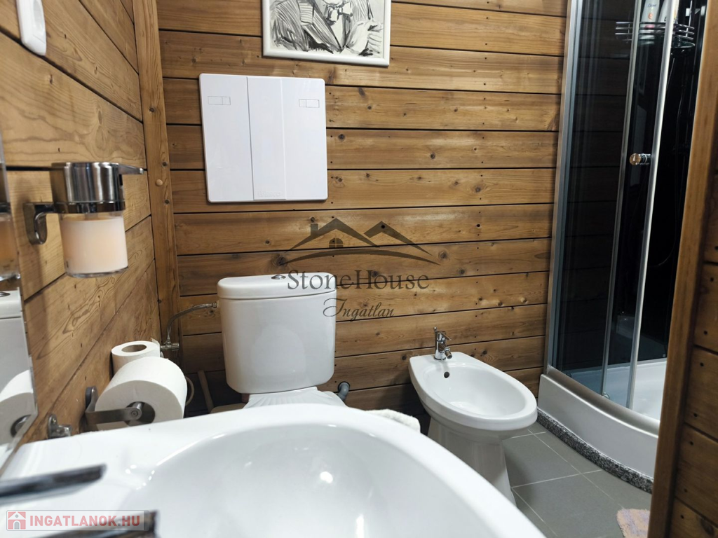 - FŰTÉS: vízteres, fatüzeléses kandallóval, elektromos kazán radiátorokkal, alsó és felső szinten külön termosztáttal