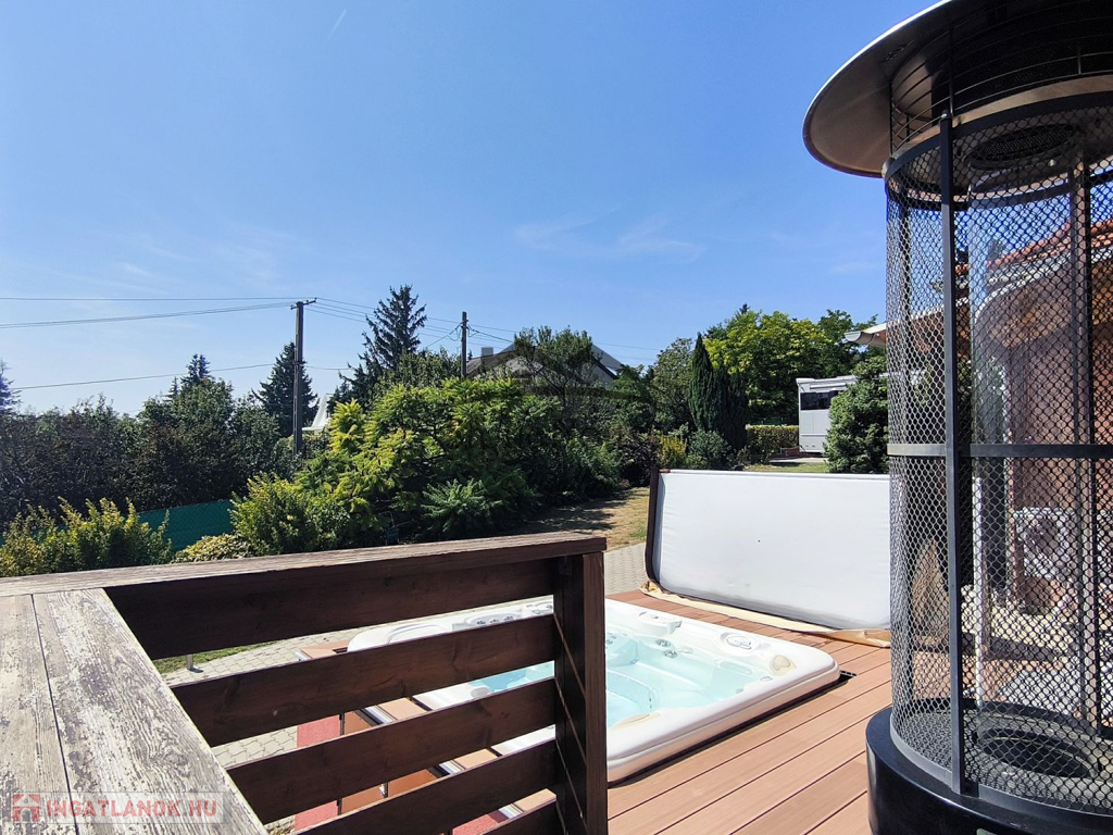 2.szint 57 m2: amerikai konyhás nappali, 2 hálószoba, fürdő WC-vel, gyönyörű panorámával rendelkező TÉLIKERT és fedett terasz, valamint a nyitott teraszon JAKUZZI