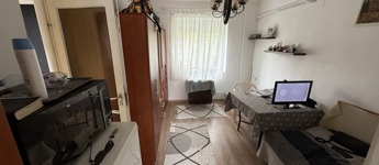 A kisebb, 40 m²-es ház külön bejárattal rendelkezik, saját fürdőszobával, konyhával és egy szobával. Fűtése parapetes gázkazánról történik, klíma és villanybojler szintén rendelkezésre áll.