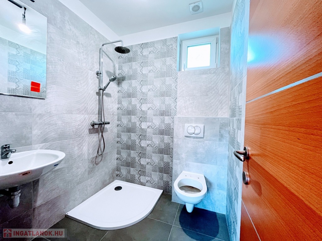 A nagyobb - előszobából nyíló - fürdőszobát káddal szerelték, és szintén az előszobából nyílik a külön wc is.