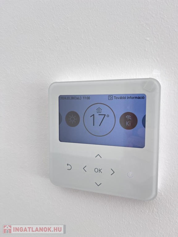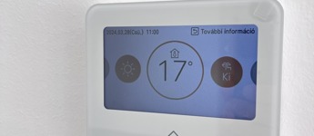 A ház fűtését hőszivattyú, míg a hűtését központi fancoil klímák látják el, és ahhoz, hogy az áramszámla alacsony maradjon, az 5kw-os, szaldós napelemrendszer járul hozzá. A fűtést minden helyiségben padlófűtés végzi. A meleg benntartását segíti a falazat 15 cm-es grafit-, és a födém 30 cm-es üveggyapot szigetelése.