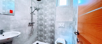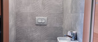 A nagyobb - előszobából nyíló - fürdőszobát káddal szerelték, és szintén az előszobából nyílik a külön wc is.