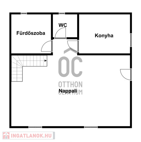 - Alsó szinten: nappali, konyha, fürdőszoba, külön WC