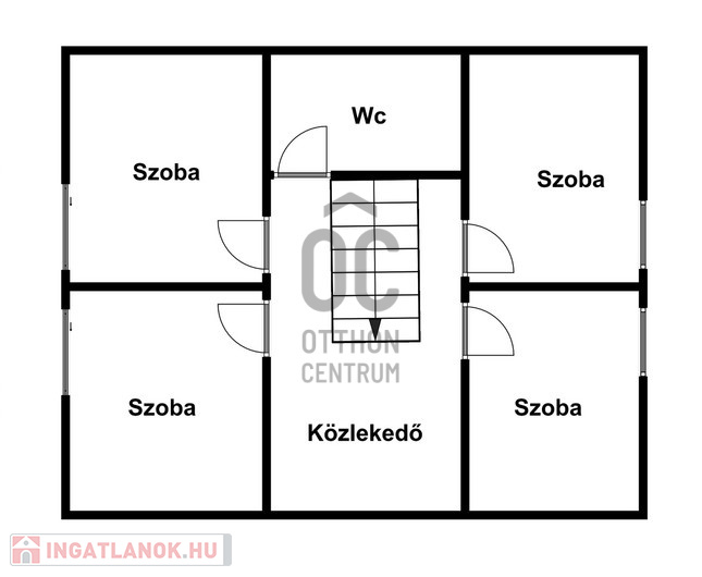 - Felső szinten: 4 hálószoba, ebből 2 erkélyes, valamint külön WC helyiség