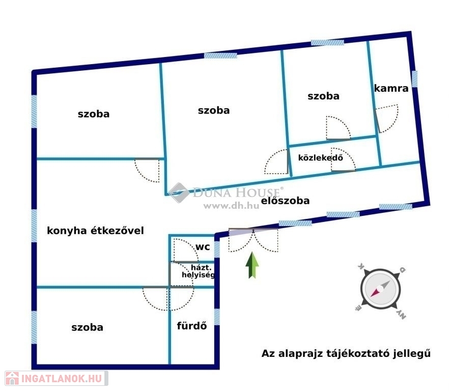 Az ingatlan négy tágas szobával, étkezős konyhával, fürdőszobával, külön WC-vel, kamrával és előszobával rendelkezik, amely kényelmes életteret biztosít akár nagyobb családok számára is. A ház előtt egy fedett terasz kapott helyet, amely tökéletes pihenésre. Az udvar térkövezett, így rendezett és könnyen karbantartható.