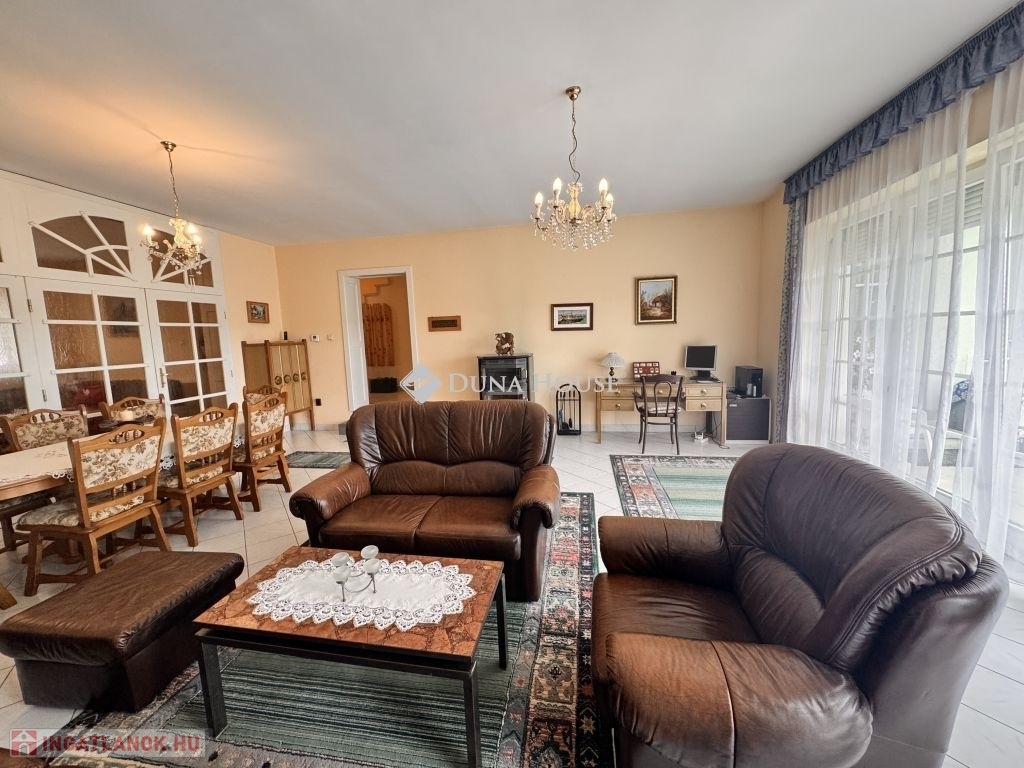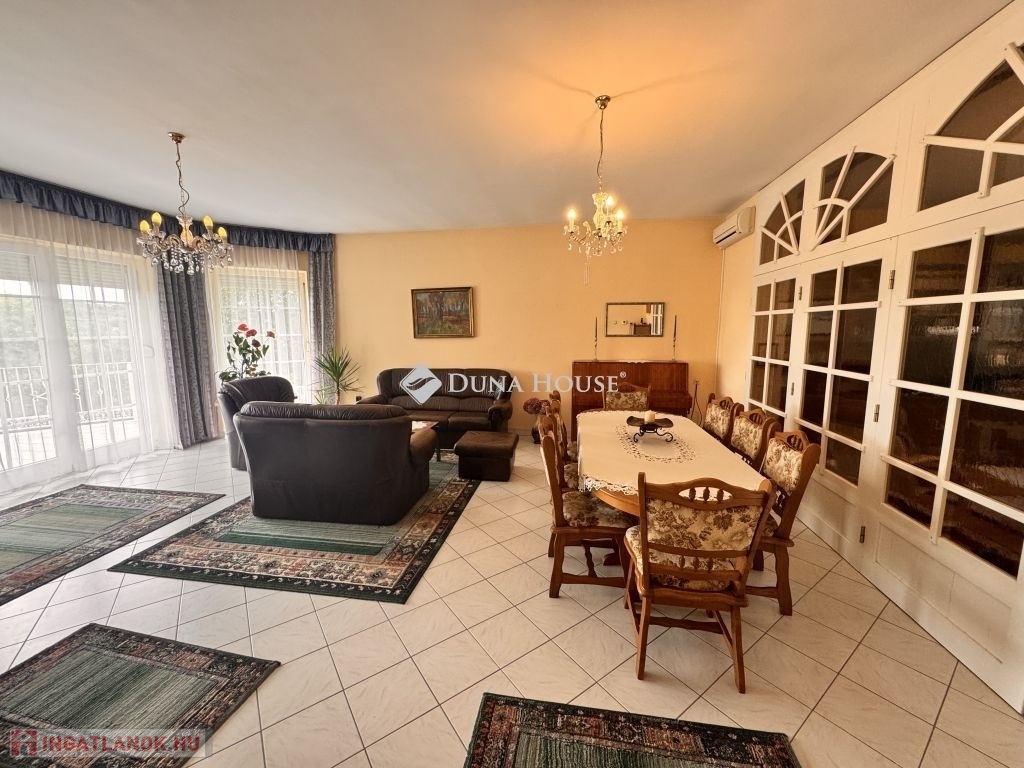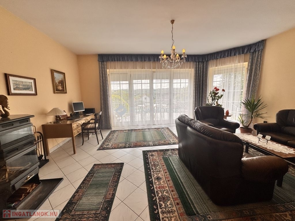 Nappali + 5 szobás, két fürdőszobás, tágas ingatlanról van szó, amelynek nagyméretű terasza zöld telekre néz.