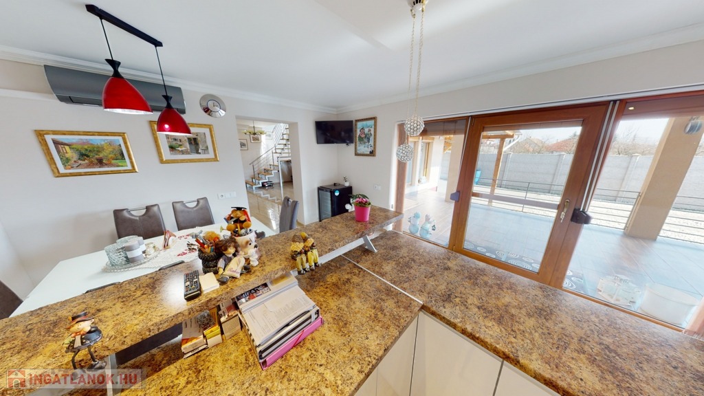 2 szinten: 4 hálószoba, 2 konyha, nappali, fürdőszoba, WC, beépített gardróbok, kamra