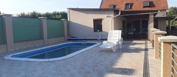 Térkövezett udvar, gyümölcsöskert nyári pihenéshez