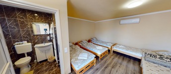 175 m²-es különálló épület: 3 hálószoba, konyha, minden szobához saját fürdőszoba