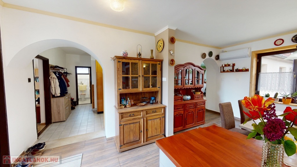 Az ingatlanban a burkolatok kerámia lap és laminált padló, melyek újszerű állapotban vannak. Meg kell jegyeznem, hogy a házban a színek, a berendezési tárgyak harmonizálnak egymással.
