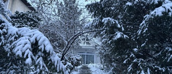 A ház egy világos, napfényes, madárcsicsergéses ősfás környezetben fekszik.
