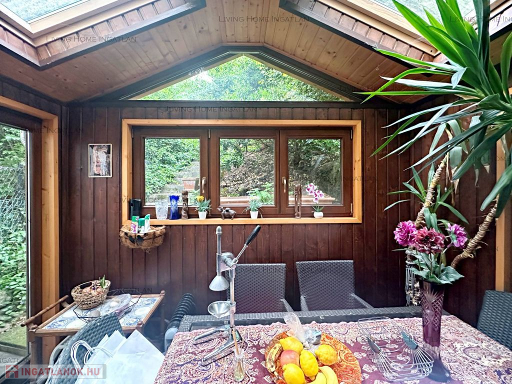 For sale a panoramic, central apartment of a 3 apartment terraced house in Remetekertváros, district II/A in one of the most exclusive, greenest part of the city. The property is located close to a nature reserve and is quiet, unique and has a split-level design. Its most impressive feature is the glazed winter garden with 180 degree panoramic views.