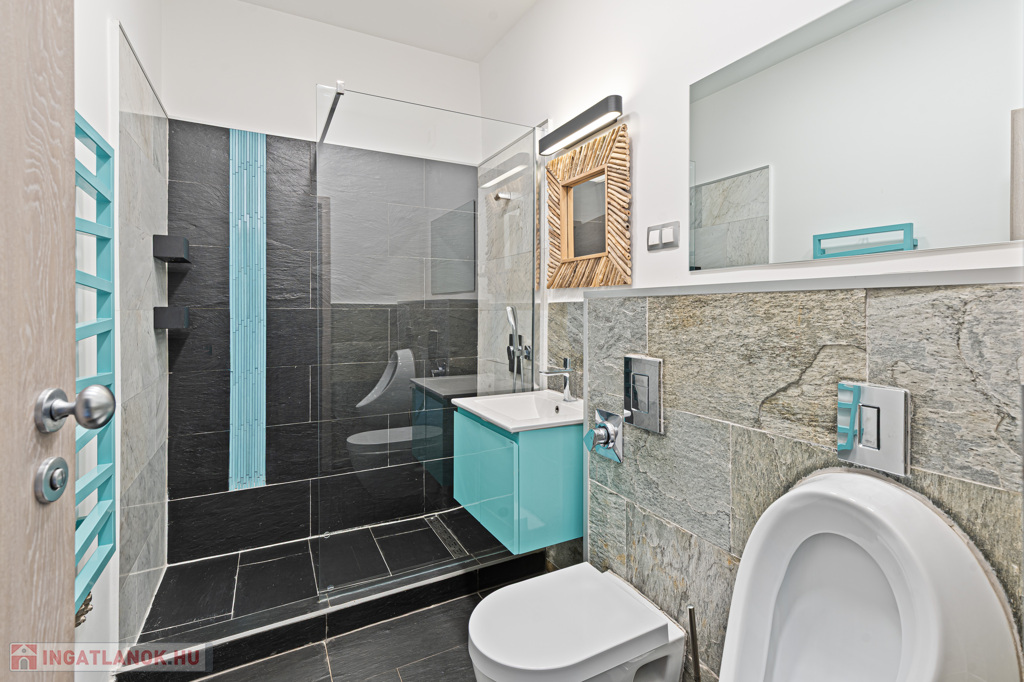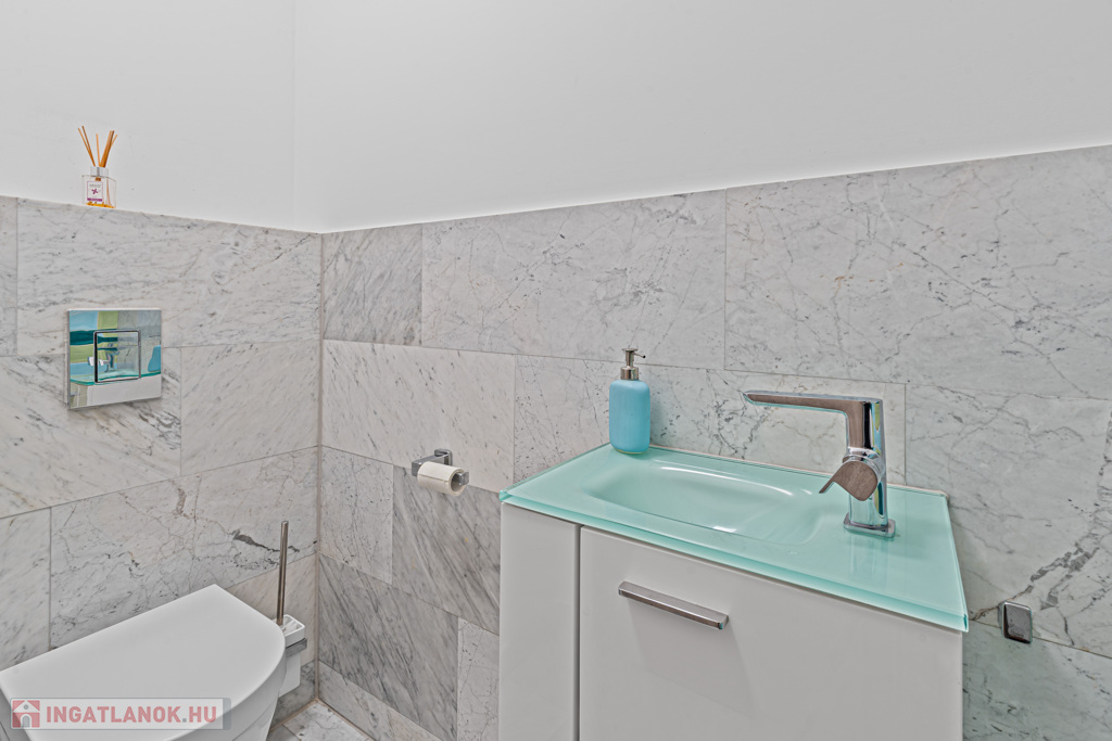 5 hálószoba, 4 zuhanyzó, 3 WC (integrált bidével), 2 piszoár, 1 kád