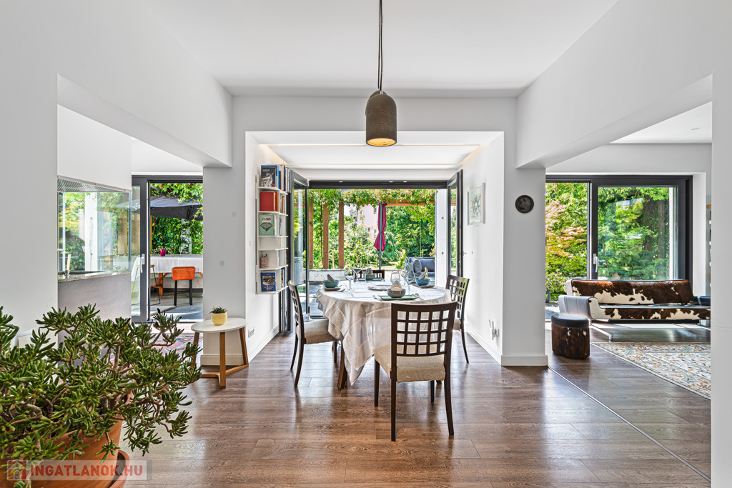 Eladó egy 2016-ban teljesen átépített, újszerű, 300 m²-es, önálló családi ház Budapest egyik legkeresettebb zöldövezetében, 4 perc sétára a Rózsadomb Centertől. Csendes, biztonságos környék, kiváló levegő és kirándulási lehetőségek (pl. Pálvölgyi-barlang).