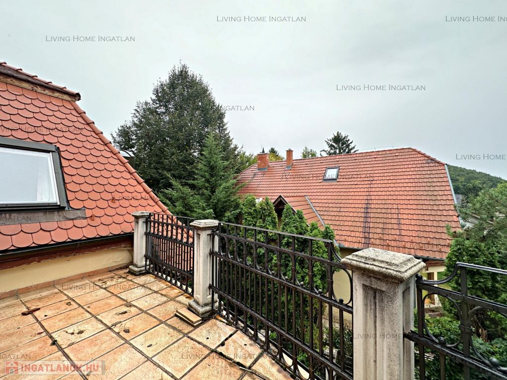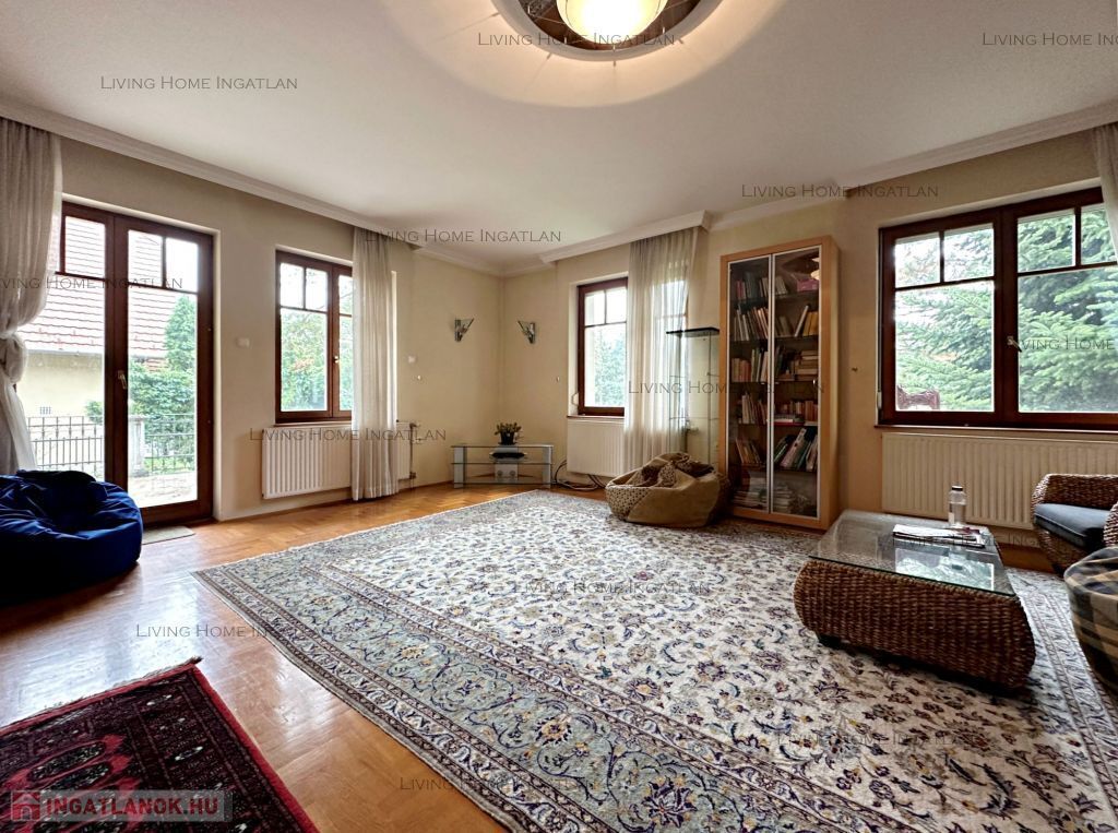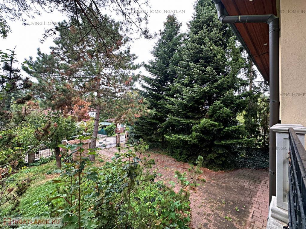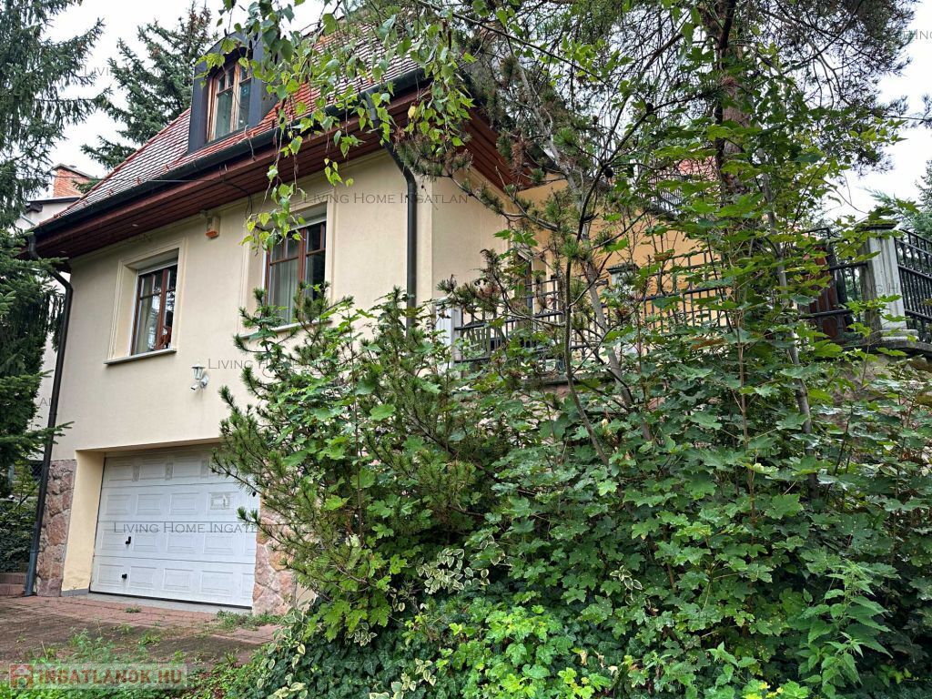 A detached house of 270 sqm for sale in a quiet, family house environment, close to nature. The entire lower floor is not included in this square meter. The property is also suitable as a business premises, as the yard can comfortably park several cars. A yoga studio used to operate in the house, taking advantage of the lower floor. The 716 sqm landscaped garden surrounded by large trees and the terrace on the higher level provide a pleasant, peaceful place for relaxation and gatherings of friends.