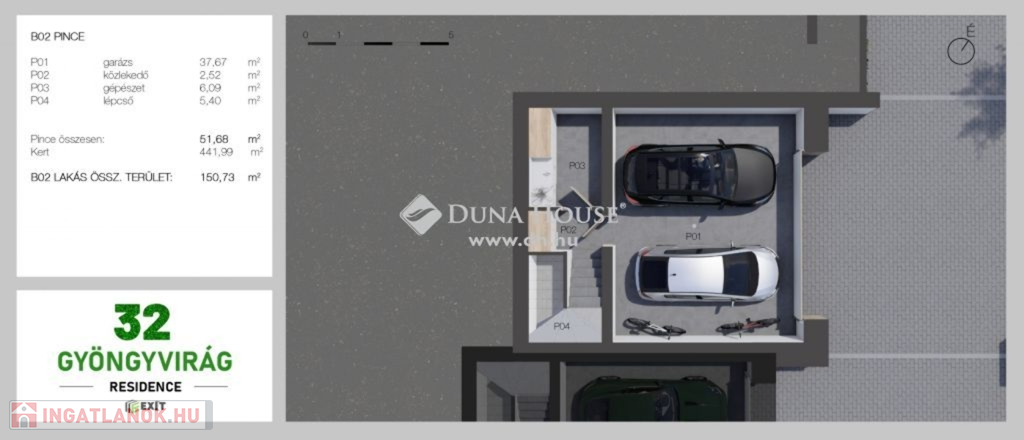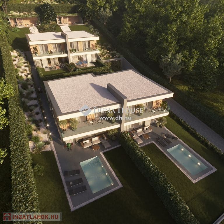 A házakhoz SAJÁT KÉTÁLLÁSÚ GARÁZS és 250-450 nm területű INTIM SAJÁT KERT tartozik, amelyek pihenésre, napozásra kiválóan alkalmasak.
