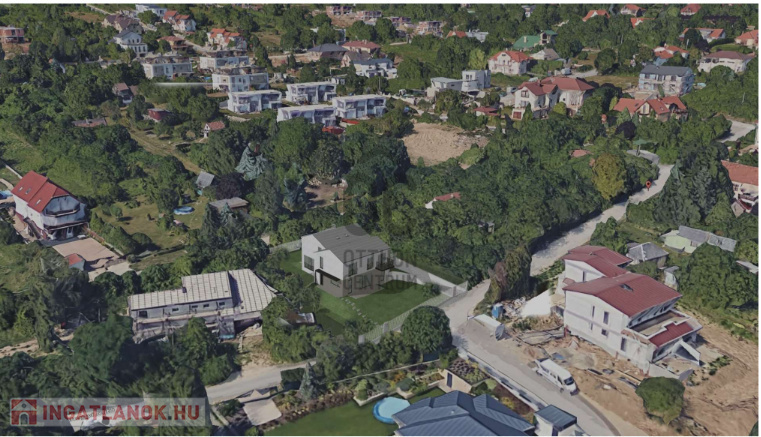 Az ikerház másik felét egy hasonló elrendezésű lakóingatlan képezi valamivel kisebb telekrésszel, mélygarázsi szint nélkül, felszíni parkoló beállókkal. Ennek kínálati ára: 222,5 millió Ft.