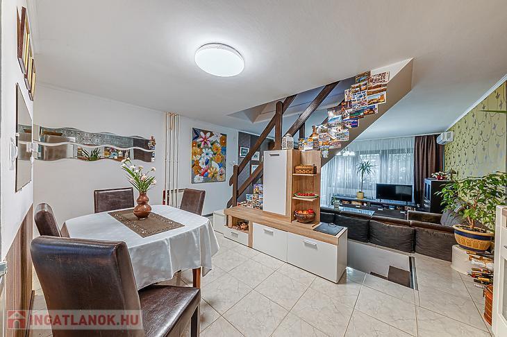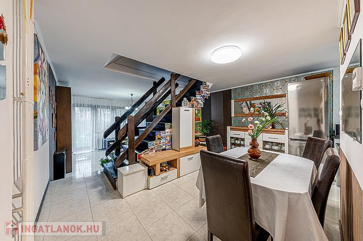 Eladásra kínálunk egy sorházi ingatlant, amely kiváló választás családok számára. Az ingatlan tulajdoni lap szerint 96 m², a valóságban azonban kb. 140–150 m² hasznos alapterülettel rendelkezik. A hozzá tartozó 200 m²-es gondozott kert kellemes kikapcsolódást biztosít.