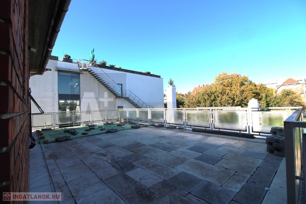 -emelet. 139,8 m2-es lakás , jelenlegi elosztása : 3 szoba/ 36m2, 20,7m2, 22m2/ hall , étkező+konyha , fürdő, wc, gardrób, lépcsőház , pihenő , 2 szoba erkély kapcsolatos ,a konyha és a 3. szoba pedig , a műhely felett kialakított, 80 m2-es teraszhoz kapcsolódik .A lakás jelenleg kiűrítés alatt áll.