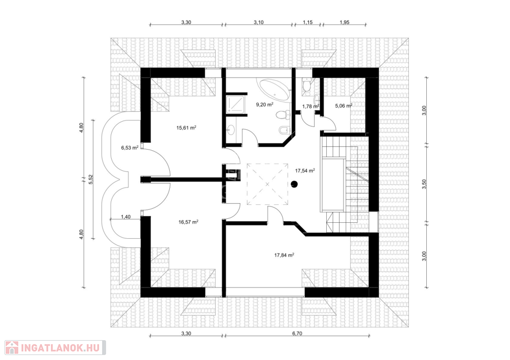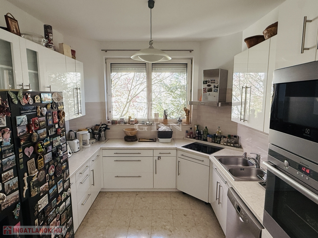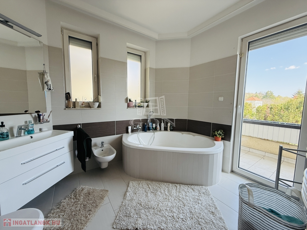 Ez a tágas, napfényes otthon akár három generáció számára is ideális, hiszen a sokszobás elrendezés és a külön nyíló lakrészek lehetőséget adnak az együtt élésre, mégis megőrizve a privát szférát.