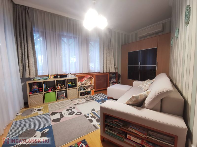 A háromszintes házat folyamatosan karbantartották így ma is egy minőségi otthon. Tágas jó beosztású ingatlan, gyönyörűen beérett kertben a természetvédelmi terület határán de mégis jó közlekedéssel rendelkezik.