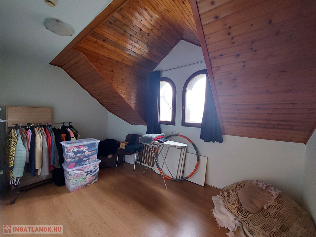 Szigetelt padlástér nettó 79 m2, beépíthető.