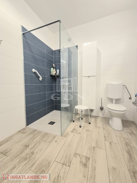 A földszinten lévő, 80 m2-es, két szobás lakás felújított állapotban, korszerűsített gépészettel rendelkezik.