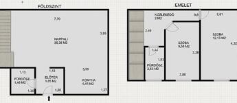 A földszinti részen amerikai konyhás nappali, közlekedő és fürdőszoba található, az emeleten 2 szoba, közlekedő és fürdőszoba. A nyílászárók műanyagok hőszigeteltek, az alsó szinten az ablakok redőnnyel is el vannak látva. A fűtést Titan villanykazán biztosítja lapradiátorokon keresztül, minden szobában légkondicionáló lett felszerelve.