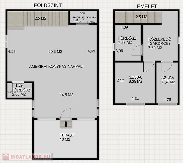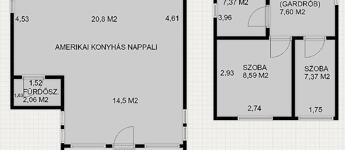 A földszinten amerikai konyhás nappali, fürdőszoba és egy tágas terasz található. Az emeleten 2 szoba, fürdőszoba és közlekedő (gardrób) áll rendelkezésre. A felújítás során új alapot, aljzatszigetelést, külső 10 cm-es hungarocell, és belső- 10 cm-es kőzetgyapot szigeteléssel látták el a házat.
