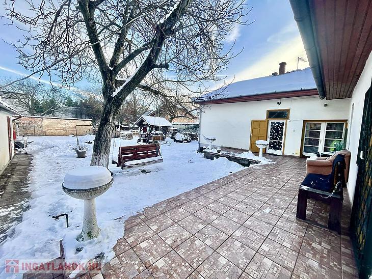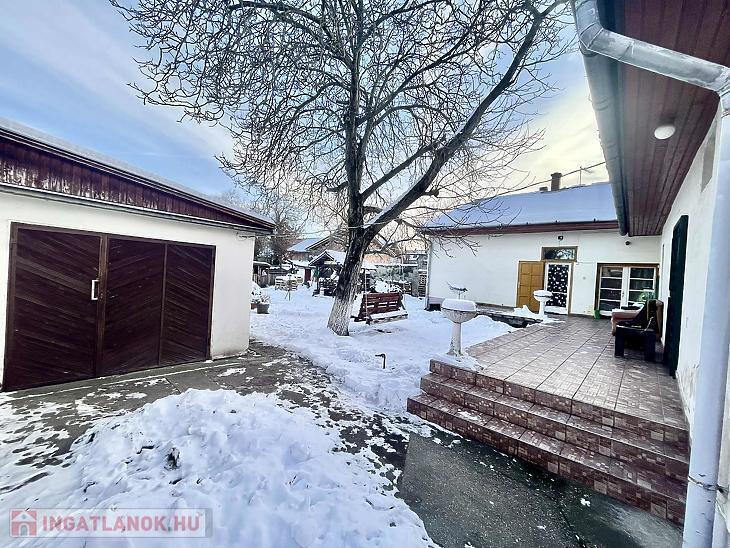 A terasz alatt egy 5 nm-es pince található. Az autó beállása tégla garázsban megoldott. A kert locsolásához fúrt kút, az otthoni munkálatokhoz fészer áll rendelkezésre. Az ingatlanban 380 V ipari áram elérhető.