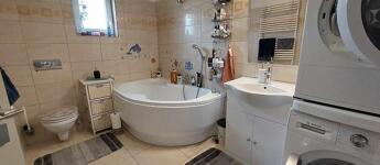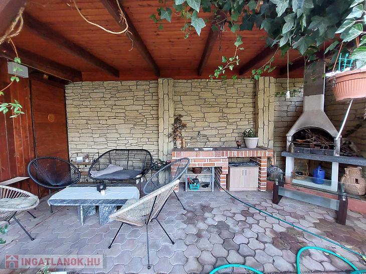 A fűtést padlófűtés és kombi cirkó biztosítja, és hűtő-fűtő klíma is rendelkezésre áll. A kertre néző teraszt a nappaliból lehet megközelíteni. Tartozik a házhoz garázs, fedett autóbeálló és a telek végében kerti sütögető hely is kialakításre került.