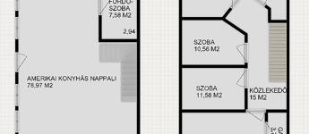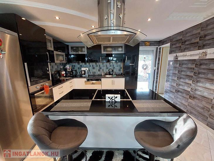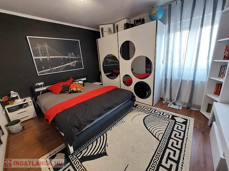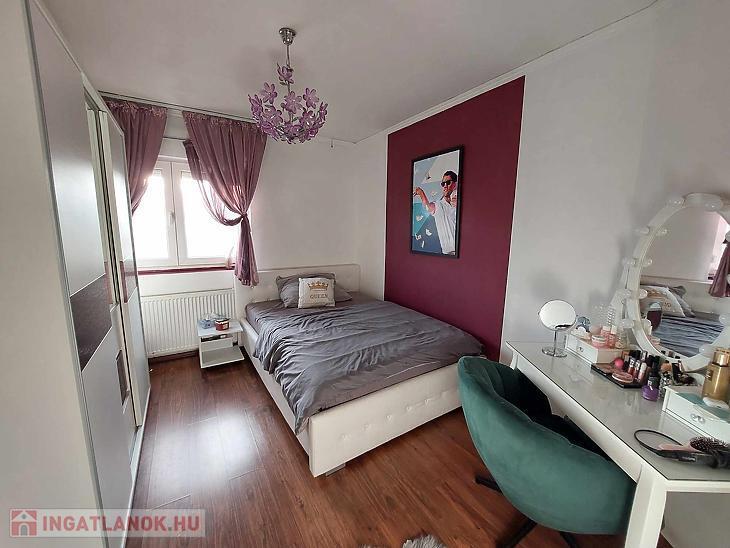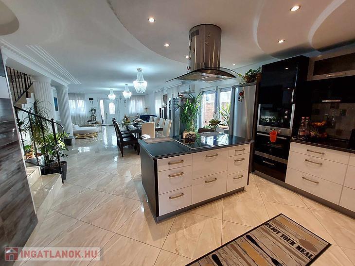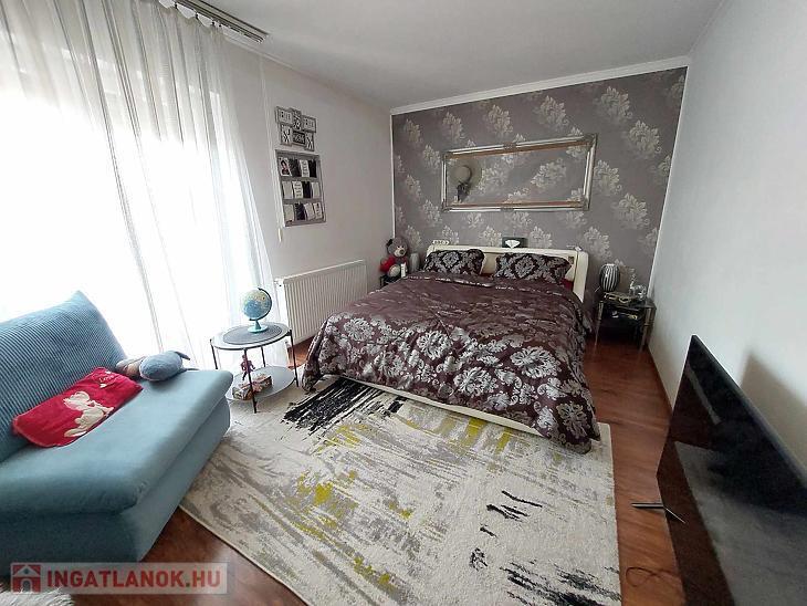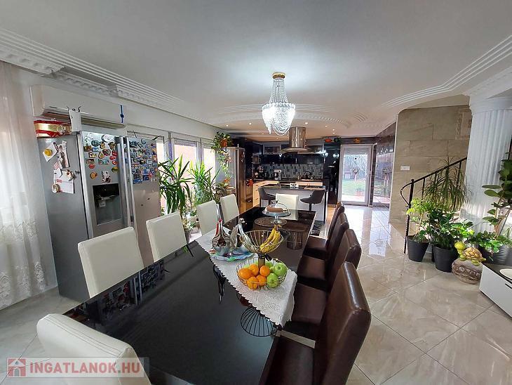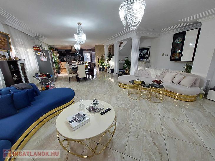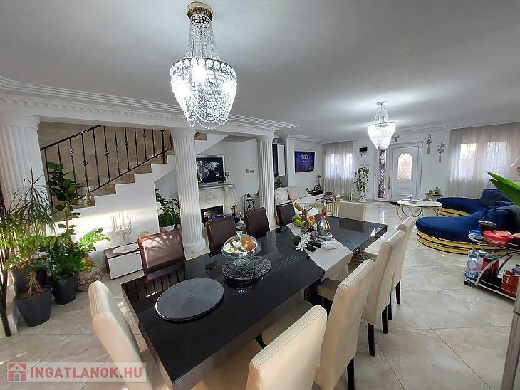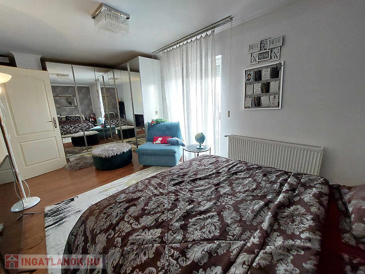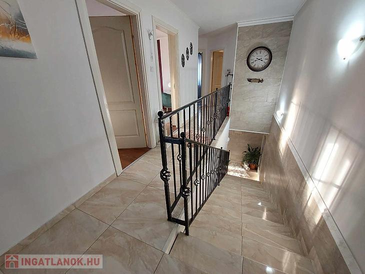 Az ingatlan belső 2 szintes, a földszinten egy hatalmas amerikai konyhás nappali és fürdőszoba található, az emeleten 4 szoba (egyik szoba gardróbbal is rendelkezik), fürdőszoba, közlekedő és erkély került kialakításra. A szobák laminált parkettásak, a többi helyiség járólapos.