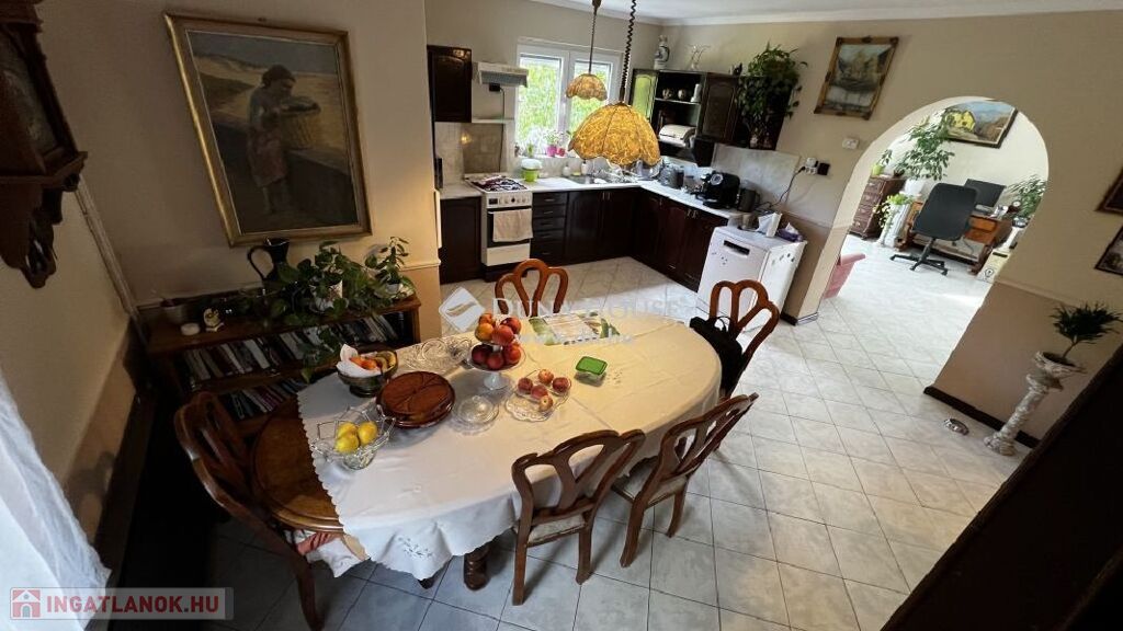 Megvételre kínálunk egy 226 nm-es családi házat, garázzsal, 728nm telekkel, beépített tetőtérrel a 17. kerület csendes nyugodt környékén.A ház 1986-ban épült, 1991 óta egy család tulajdonában van. Folyamatosan karbantartották, többször is felújították.A legutóbbi felújítás 2021-ben történt, nyílászárókat korszerű termoüveges ajtókra és ablakokra, illetve új (részben elektromos) redőnyök is felszerelésre kerültek.A ház elrendezése a lehető legideálisabb, tekintve hogy megvannak a tágas közös terek és a kényelmesen berendezhető különálló lakószobák is.A földszinten lévő folyosóról nyílik a szuterénlejáró, az étkezőből pedig az emeletre juthatunk egy igényes lépcsősorral.A nappaliból kilépve (szintén két éve felújított) félig fedett kerti teraszra érkezünk.A szuterénben ipari áram elérhető, így műhelyként, vagy egyéb vállalkozás üzemeltetésére is alkalmas lehet. Jelenleg tároló és mosókonyha funkciót lát el.Az épületen belül külön bejáratú garázs van, előtte pedig két autónyi parkoló került kialakításra új automata tolókapuval.Az elektromos hálozat légvezetékes betáplálású.A fűtést jelenleg gázcirkó látja el lapradiátorokkal.A melegvízről villanybojler gondoskodik, a mosogatónál külön kis bojlerrel.Az ingatlan riasztóval védett.A szuterén 68,9 nmA földszint 89 nm (+ garázs 11,5 nm, + terasz 37,4 nm)Az emelet 68,6 nmA kert rendezett, folyamatosan karbantartott.Amennyiben az ingatlan felkeltette érdeklődését, hívjon bizalommal.