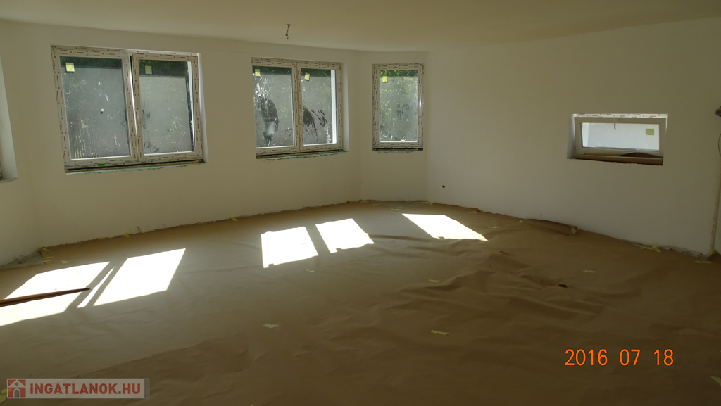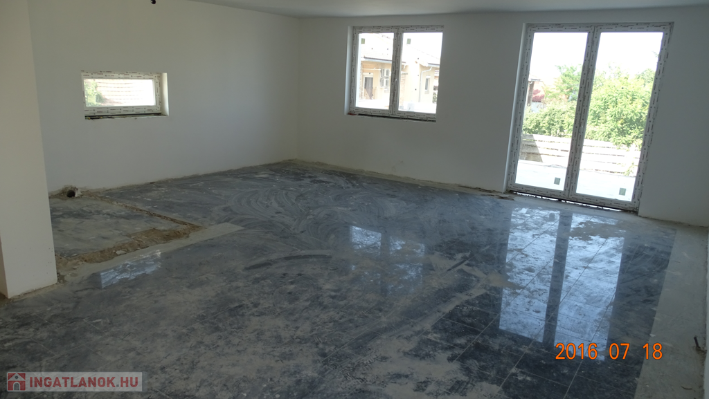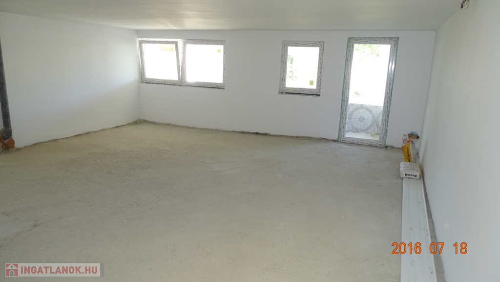 Jelenleg kb. 75%-os készültségi állapotban van. Kívülről 15 cm-es dryvit EPS hőszigetelést, festést kap és korlátok kerülnek felszerelésre. Az összes ajtó és a háromrétegű nyílászárók újak.