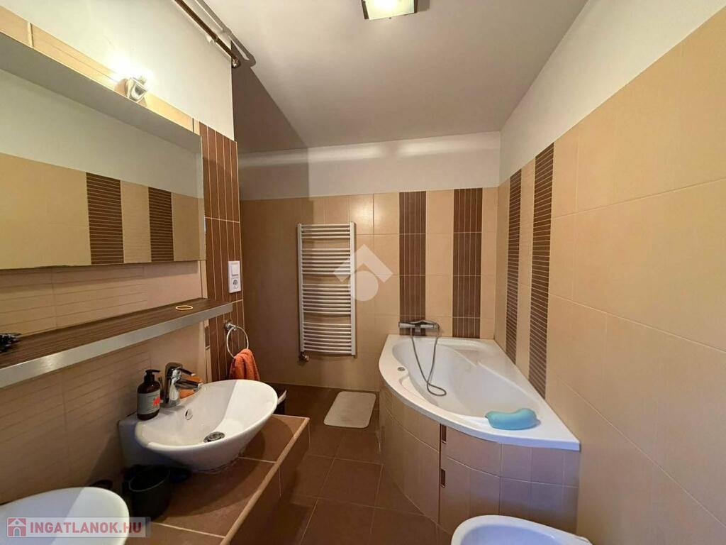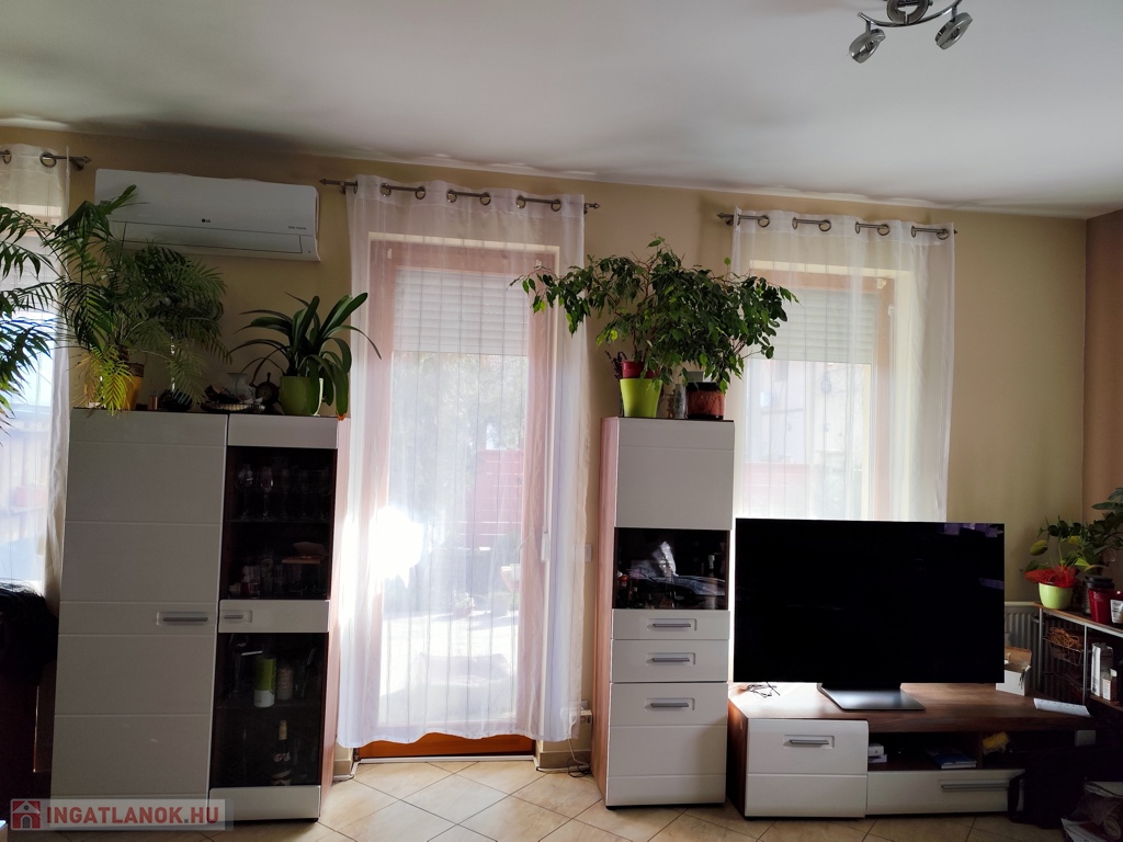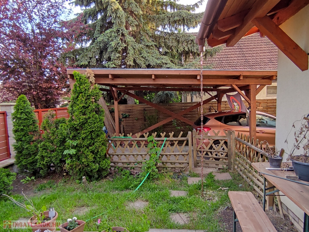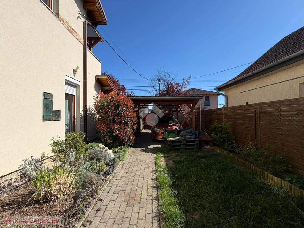 Egyéb jellemzők, előnyök: teljes belmagasság minden helyiségben; világos, élhető terek; padlás; közvetlen kertkapcsolat; nagy terasz; motoros kertkapu távirányítóval; fedett térkövezett gépkocsibeálló; redőny; alacsony rezsi; nincs közös költség; nincs a szomszéddal közös rész, átjárás.