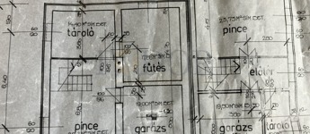 • Pince: Több tároló helyiség és garázs az utcáról nyíló garázskapuval