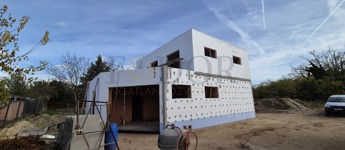 30 cm falazat + 12 cm dryvit szigetelés, lapostető Austrotherm szigeteléssel (sátortető is választható értékegyeztetéssel), 6 légkamrás, 3 rétegű hőszigetelt nyílászárók. A fűtés Hajdú hőszivattyúval történik, padlófűtés rendszerrel, külön vezérelhető szintekkel. A burkolatok, szaniterek és beltéri ajtók a vevő igényei szerint választhatók előre meghatározott értékkeret alapján. Viacolor burkolatok, WPC kerítés, elektromos garázskapu előkészítéssel, riasztó csövezése, internet és TV csatlakozás minden helyiségben.