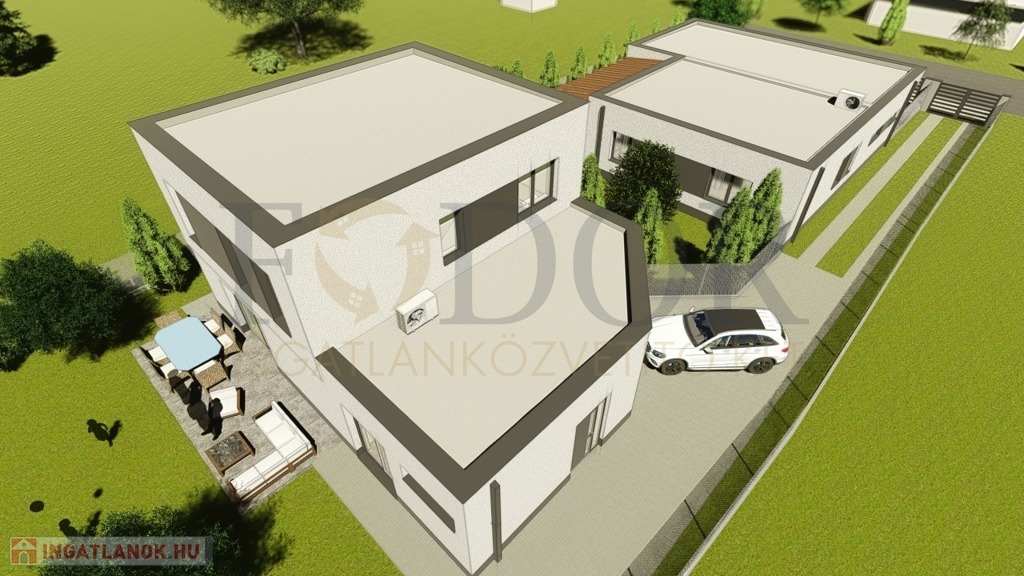A ház egy osztatlan közös telken épül, ügyvédi használati megosztással, külön közműórákkal és teljesen szeparált bejáratokkal.