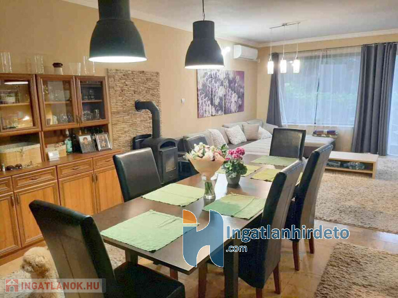 Elhelyezkedése: Belterület Állapota: Jó Komfort besorolása: Dupla komfortos Építési éve: 2000 Alapterülete: 209 m2 Telekterülete: 307 m2 Szobák száma: 6szoba Fűtés típusa: Cirkó Építési mód: Tégla Tető formája: Magas Tető anyaga: Cserép Parkolási lehetőség: Garázsban Jellemzői: Alacsony rezsi, Csendes környék, Jó közlekedés, Légkondicionáló, Beépített szekrény, Kert, Beépített tetőtér Energetikai besorolás: E Egyéb jellemzők: Terasz Közelben: Iskola, Óvoda