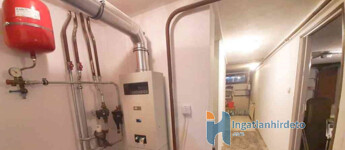 A fűtést gáz cirkó kazán biztosítja, a nappaliban díszkályha is helyet kapott.