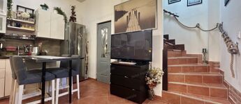 A házrészből a kertre néző kilátás valódi nyugalmat és békét sugall. A parkolás ingyenesen, az utcán lehetséges, így nem kell a parkolóhelyek miatt aggódnia. Az ingatlan a modern életstílus minden kényelmét magában foglalja.