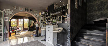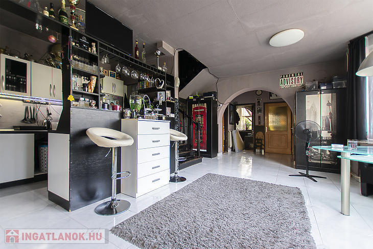 Az ingatlan földszinti kialakításának köszönhetően kivételesen tágas terekkel és sokoldalúan kihasználható helyiségekkel rendelkezik. A földszinti amerikai konyhás nappali és étkező egy légtérben, boltíves kialakítással, közel 60 nm-en biztosítja a kényelmet. A földszinten található továbbá egy fél szoba, amely dolgozószobának, vendégszobának vagy kisebb hálónak is kiváló lehet, valamint egy fürdőszoba.