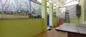 A házhoz tartozik egy 18 m²-es terasz, amely kellemes kikapcsolódási lehetőséget nyújt. A telken belül parkolási lehetőség biztosított, emellett pince és két melléképület is rendelkezésre áll, amelyek további tárolási vagy egyéb hasznosítási lehetőségeket kínálnak.