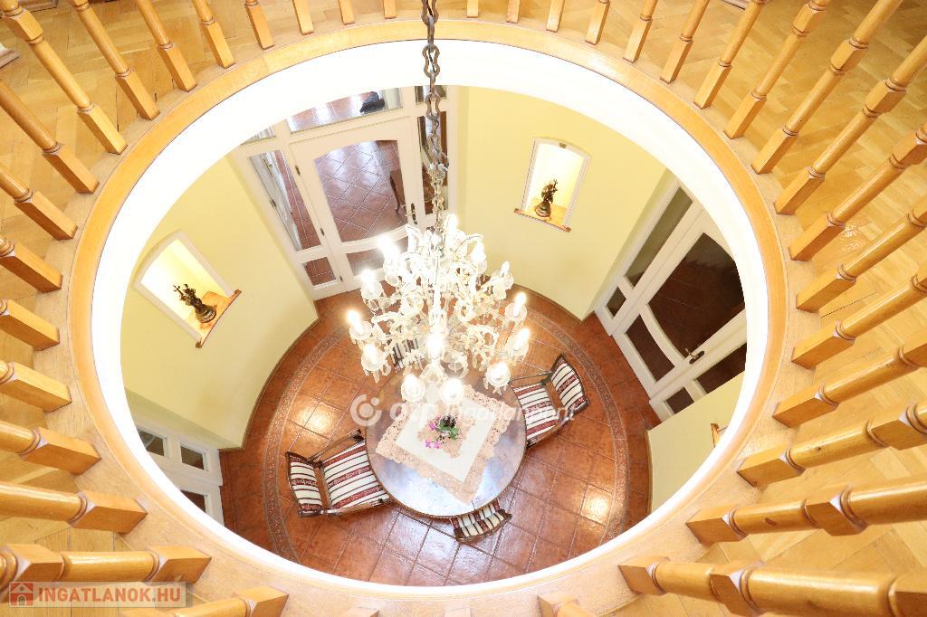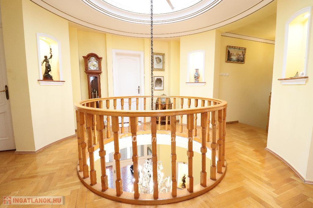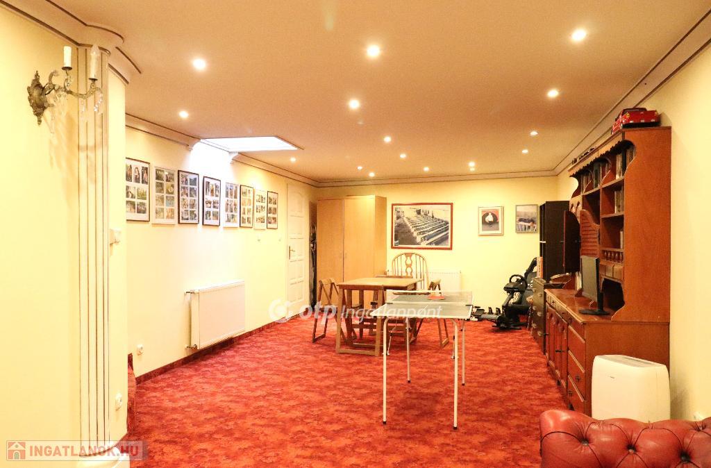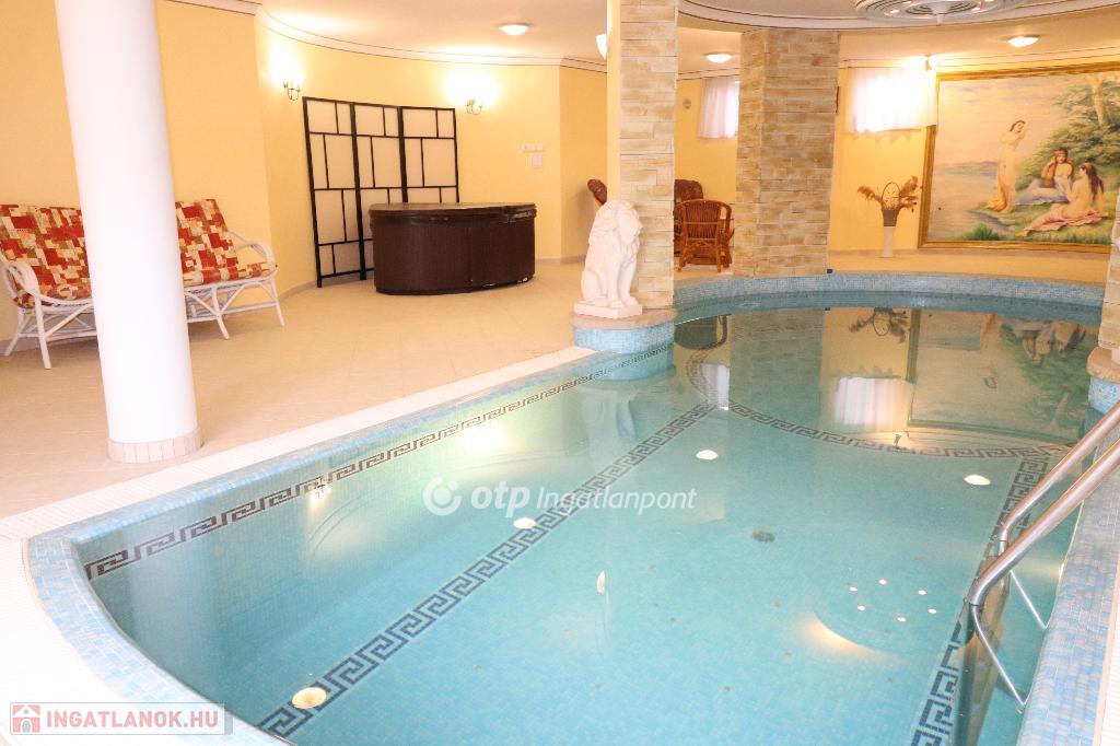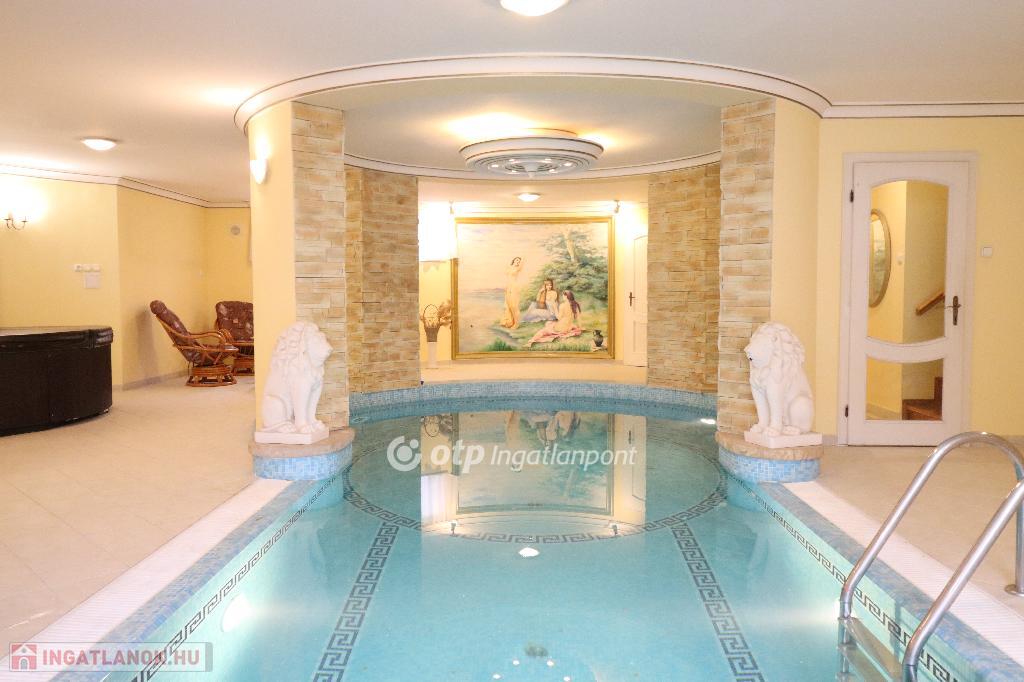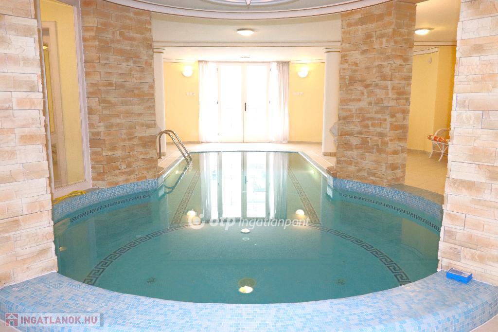 A három szintes ingatlan alsó részén található egy óriási wellness részleg, 24 nm-es medencével és külön fürdőszobával, valamint egy hobbyszoba.
