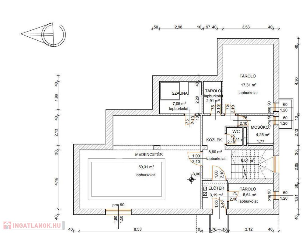 Gépészeti és egyéb tároló helységek 40m2
