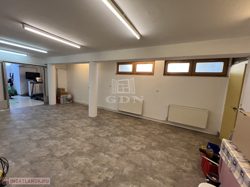 -a pinceszinten a garázs mögött található egy tároló, de a válaszfal kivétele révén a garázs alapterülete szintén nagyobbítható