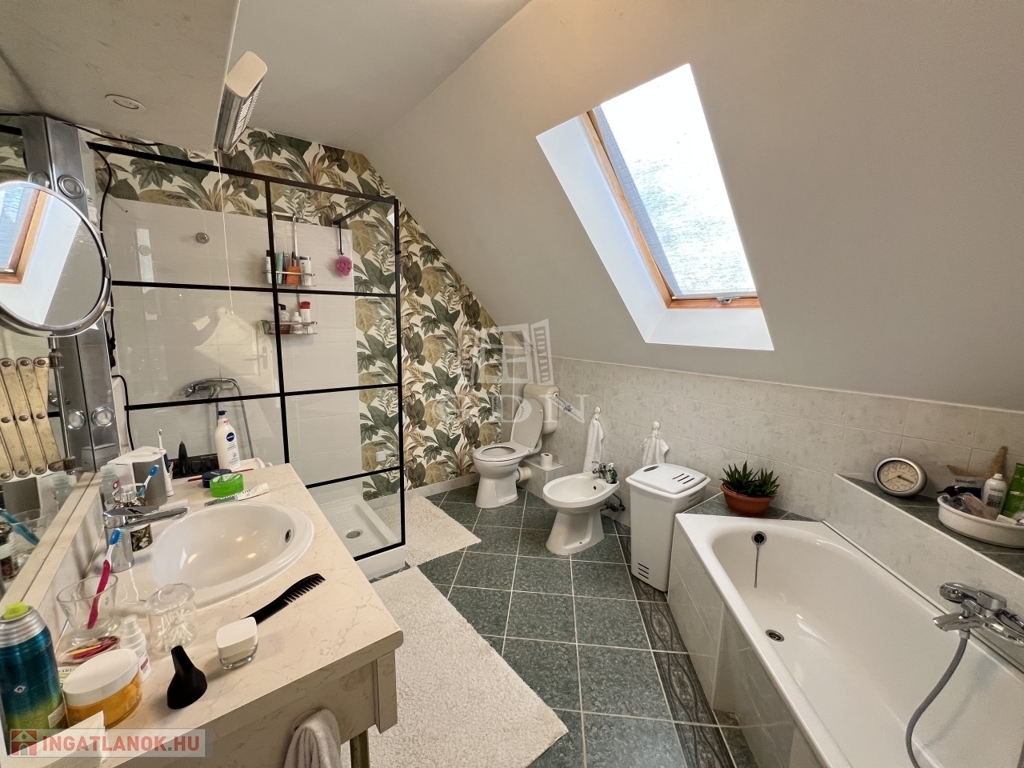 -a tetőtérben a válaszfalak gipszkarton falazatúak, így a fenti a terek könnyen változtathatóak, pl. a képeken látható fenti galérián plusz szoba is kialakítható.